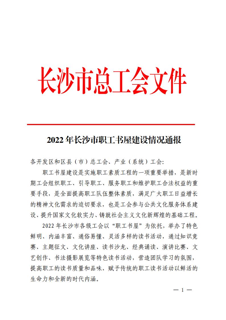2022年11月11日,长沙市总工会2022年长沙市职工书屋建设情况通报,sunbet申搏守望未来,聚力赋能主题活动被评选为2022年度长沙市职工主题阅读学习活动优秀项目。2022年度长沙市共有40个项目或企业上榜,其中...