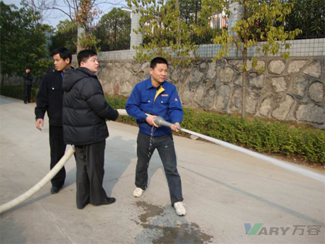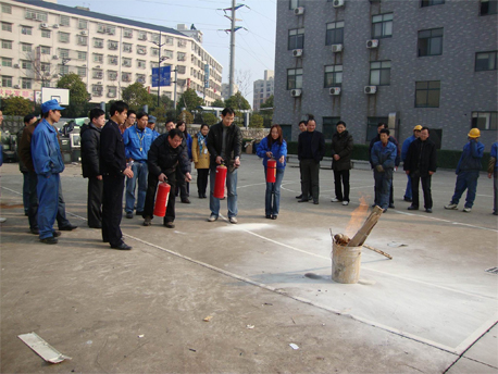 公司此次拟定的培训计划重点分为二大块:一、消防知识传授;二、消防器材实际操作及对预备火灾现场的扑灭。培训师首先在培训室讲授了家庭防火、防止天然气泄露、遇火灾逃生自救办法,接下来就是实地演练操作了。在公司的蓝球场,培训师以浅显易懂的表述边解说边示范。项是手提灭火器的使用,使用时,应将手提灭火器带到火场,先拔出保险销,一手握住开启把,另一手握在喷射软管前端的喷嘴处。如灭火器无喷射软管,可一手握住开启压把,另一手扶住灭火器底部的底圈部分。先将喷嘴对准燃烧处,用力握紧开启压把,使灭火器喷射。第二项是水带的连接。涉及器材为水带、水枪、分水器。训练人员在听到“预备”口令后,进入准备状态,一声“开始”,迅速向前,手持水带,直线甩开,把其中一个接口连到分水器后,再拿起另一个接口快速跑动,同时连接水枪,冲出终点线,直扑起火现场。参训人员按要求逐个进行了操作练习,以便讲解员一对一帮助学员把操作规范到位。