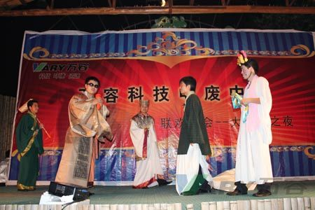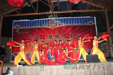 晚会在开场舞《开门红》中拉开了帷幕,随后近五十名演职人员带来了《好人好梦》、《我的中国心》和《草原之夜》等十多个独唱、歌曲、小品节目。其中,明果英董事长的独唱、刘科文总经理和罗萍部长的深情对唱,电废中心的俊男靓女们的串唱,更是将晚会一步步推向高潮。晚会大气,节奏明快,吸引了众多居民和游客观看。,一曲《明天会更好》将整场晚会的气氛拉至点,顺利落下了帷幕。