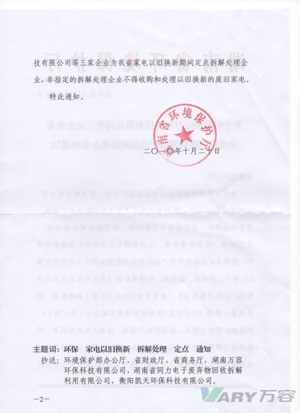 近日,湖南省环境保护厅以湘环函<2010>420号文件发布了《关于明确湖南sunbet申搏有限公司等三家企业为家电以旧换新期间定点拆解处理企业的通知》,决定授予sunbet申搏在内的三家企业“湖南省家电以旧换新定点拆解处理企业”资质。