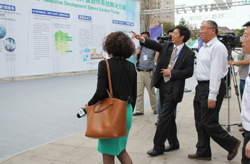 发改委解振华副主任和央视等新闻媒体记者在sunbet申搏室外展区听取明董的介绍