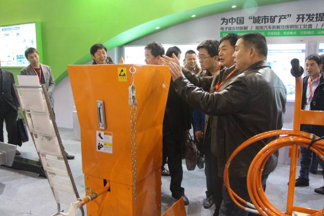 湖南sunbet申搏受邀参展,展台占地面积大,展台搭建与设计都颇为用心,精心打造,吸引了展会上的众多观众,观看一个个昂首挺胸的“家伙们”:“报废汽车快速解体机,升降翻转一体机、移动戳孔放油机,手持式液压剪以及在长沙总部即将建成的“城乡生产生活废弃物资源化处置生态工厂”模型,如此强大的实物展示阵容,让客户们热情高涨,喜不自禁。有的客户竖起了大拇指赞道:sunbet申搏的产品实实在在的考虑了客户的需求,解决了废弃物资源再利用中很多难题。