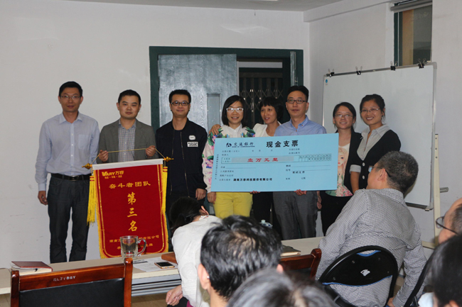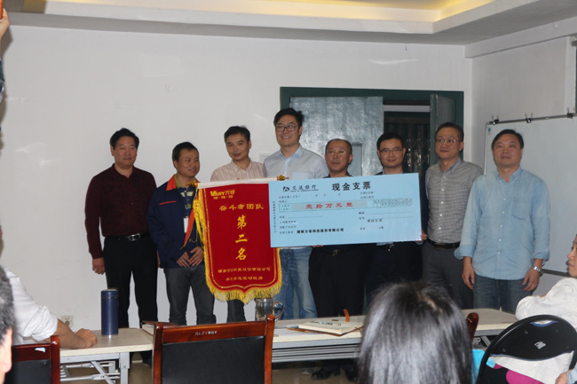 财务总监张金波为U9 ERP系统导入项目组颁发“奋斗者团队”荣誉锦旗及1万元现金支票