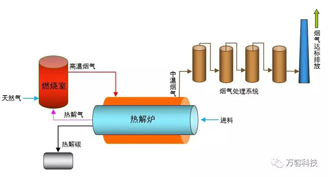 工艺简单、操作简便,无需破碎、筛分等复杂的预处理流程,可适用于复杂、混合的物料,采用热解气回用技术、大幅度降低运行成本。