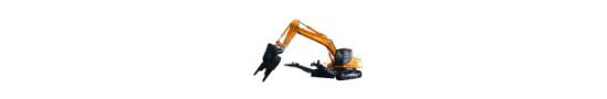 主平台为工字梁结构,焊接工艺精细,大幅提高耐用度;下部行走架采用箱型梁与X型结构,增强地盘在大负荷情况下的抗扭强度,分散机体应力;车体重心布置优化,解体作业更加稳定;密封润滑式履带,免维护拖链轮,带有护罩保护,延长履带的使用寿命。