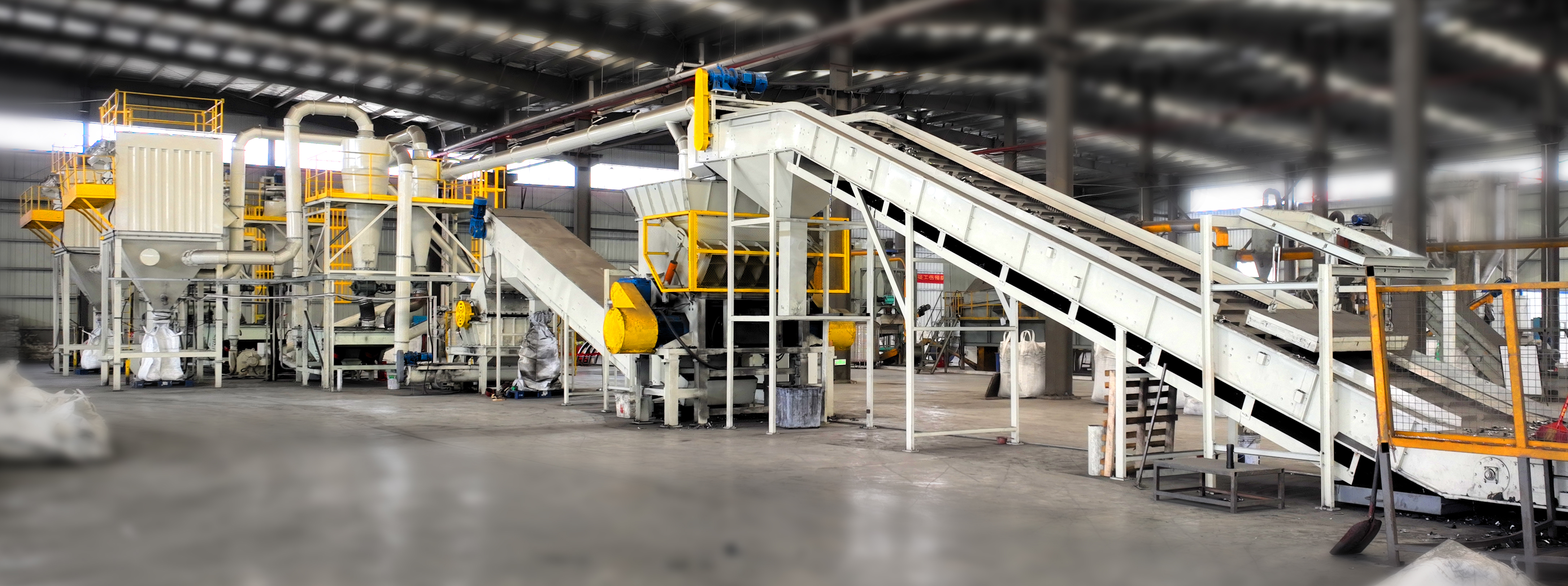 由涡流粉碎机、分级机、旋风分离器、脉冲除尘高压风机、管路平台等组成,具备粉碎剥离、气流分极两大核心功能,能将极片中黑粉和铝/铜箔进行粉碎、高效剥离、精细气流分选,避免极片破碎过程中铜、铝的过度破碎,可得到普纯极粉(极粉铝含量低于3000 ppm)及高纯极粉(铝含量小于300 ppm)两种规格,普纯极粉品质优于市面,降低后续湿法冶炼成本,高纯极粉纯度有保障,可直接作为物理修复原料使用。